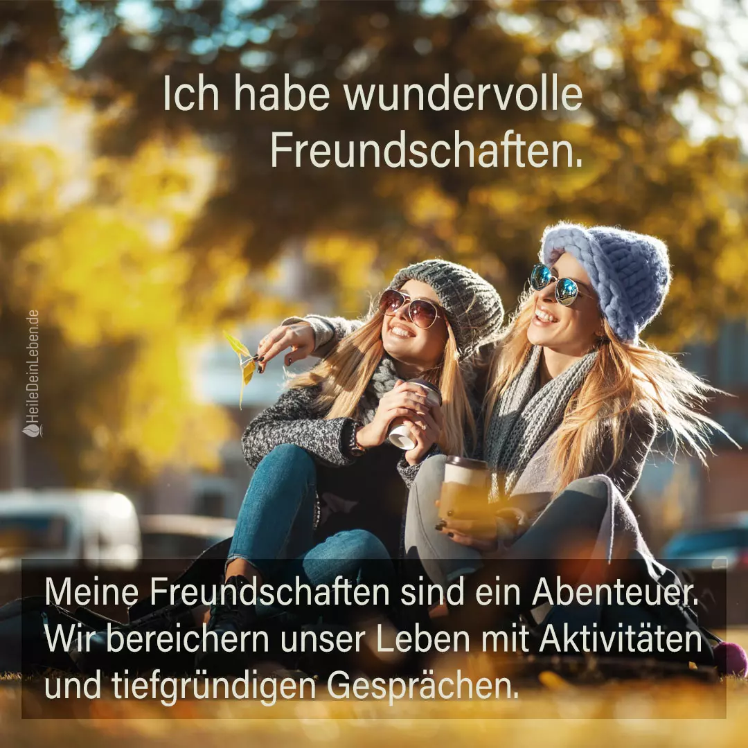 Mit diesem Teil der Freundschafts-Affirmation weckst du deine Begeisterung für großartige Freundschaften. Neben Begeisterung gehören dazu auch Dankbarkeit, Lebendigkeit, Freude und mehr.