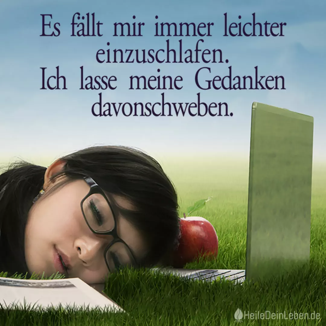 Mit Konzentration bringst du deine Gedanken leicht immer wieder zum Text der Einschlaf-Affirmation zurück. Dass dabei deine Gedanken abschweifen ist normal. Wenn es dir auffällt, einfach wieder die Einschlaf-Affirmation denken.