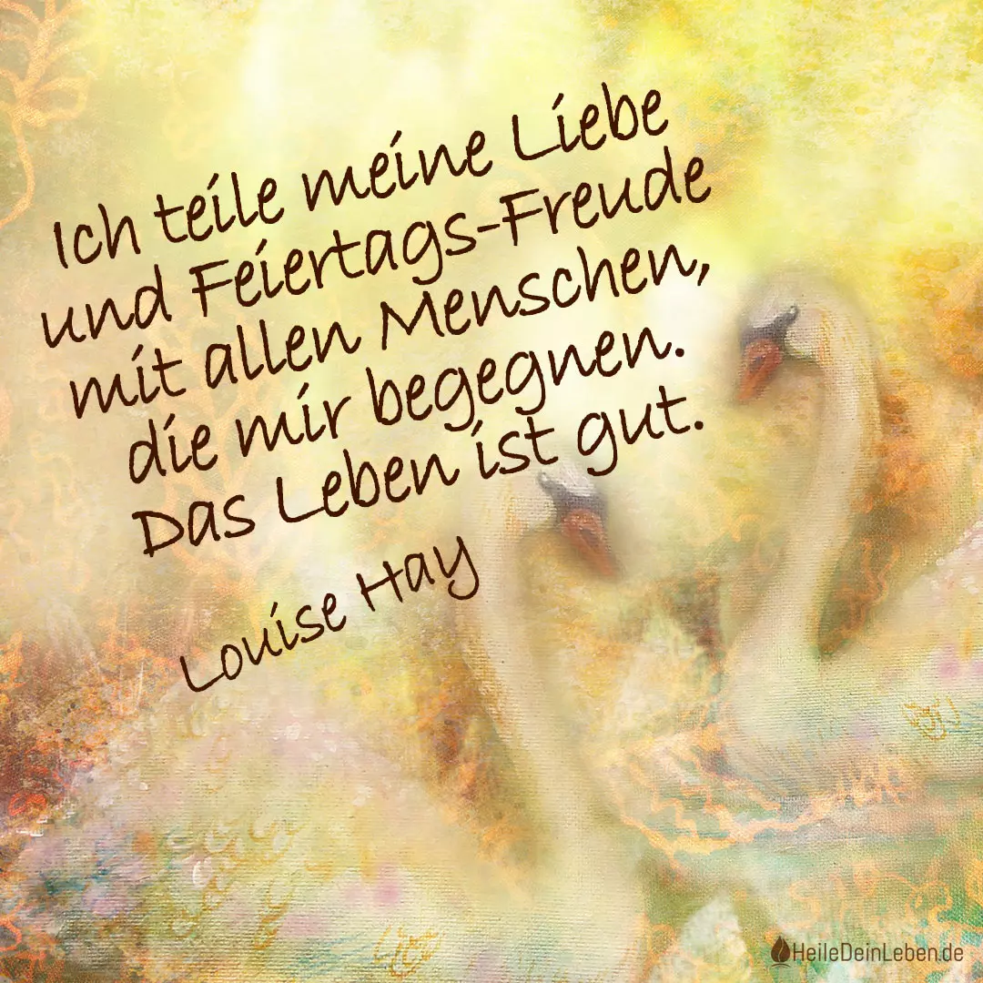 Ganz amerikanisch und politisch-korrekt erwähnt Louise in ihren Festtagsaffirmationen das Wort Weihnachten gar nicht mehr. Wir haben dann auch das Affirmationsbild passend dazu absichtlich nicht christlich-weihnachtlich gestaltet.