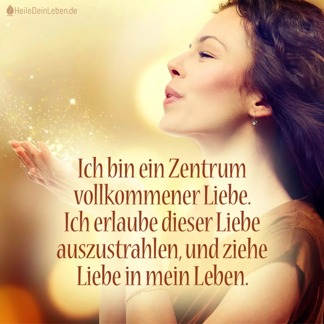 Ich bin ein Zentrum vollkommener Liebe. Ich erlaube dieser Liebe auszustrahlen, und ziehe Liebe in mein Leben.
