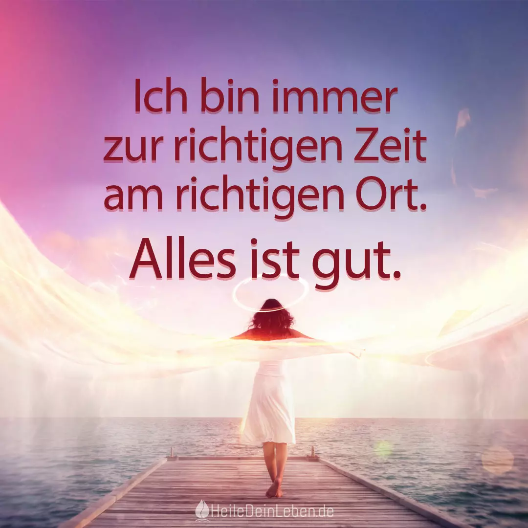 Alles, was dir begegnet, will dich fördern. Dient deinem Wachstum. Aber es liegt an dir, was du daraus machst. Mit dieser Affirmation kannst du anfangen, den Widerstand abzubauen, den du vielleicht gegen einzelne Aspekte deiner Situation hast. Wenn der Widerstand weg ist, öffnet sich der Raum für Neues und für Lösungen. Du bist immer zur richtigen Zeit am richtigen Ort!